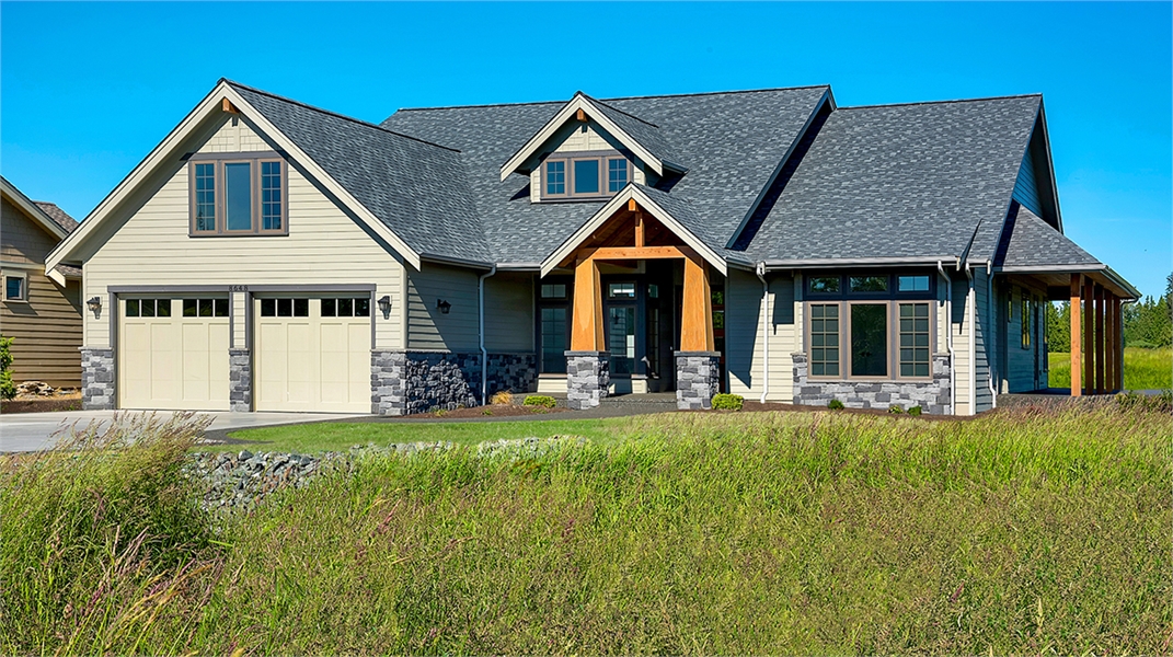 This country-style house plan with a Craftsman flair includes three bedrooms, 2.5 baths and 2,939 square feet of living area. Beyond the front porch with tapered columns, the vaulted great room is certainly the main gathering place in this home plan. The fireplace is a nice extra. The family chef will love the gourmet kitchen, with useful island and convenient pantry. Serve any meal, casual or formal, in the versatile dining area. The outdoor area is large and noteworthy! It is partially covered, promoting fresh-air dining and unwinding. The quiet master bedroom is a veritable oasis. The spa-feel bath flaunts a garden tub, a sit-down shower, a dual-sink vanity and a walk-in closet. Builders point out the versatile office in this home design, which would make a nice library or den. Are you thinking of taking oil painting lessons? Set up an art studio in the quiet bonus room.