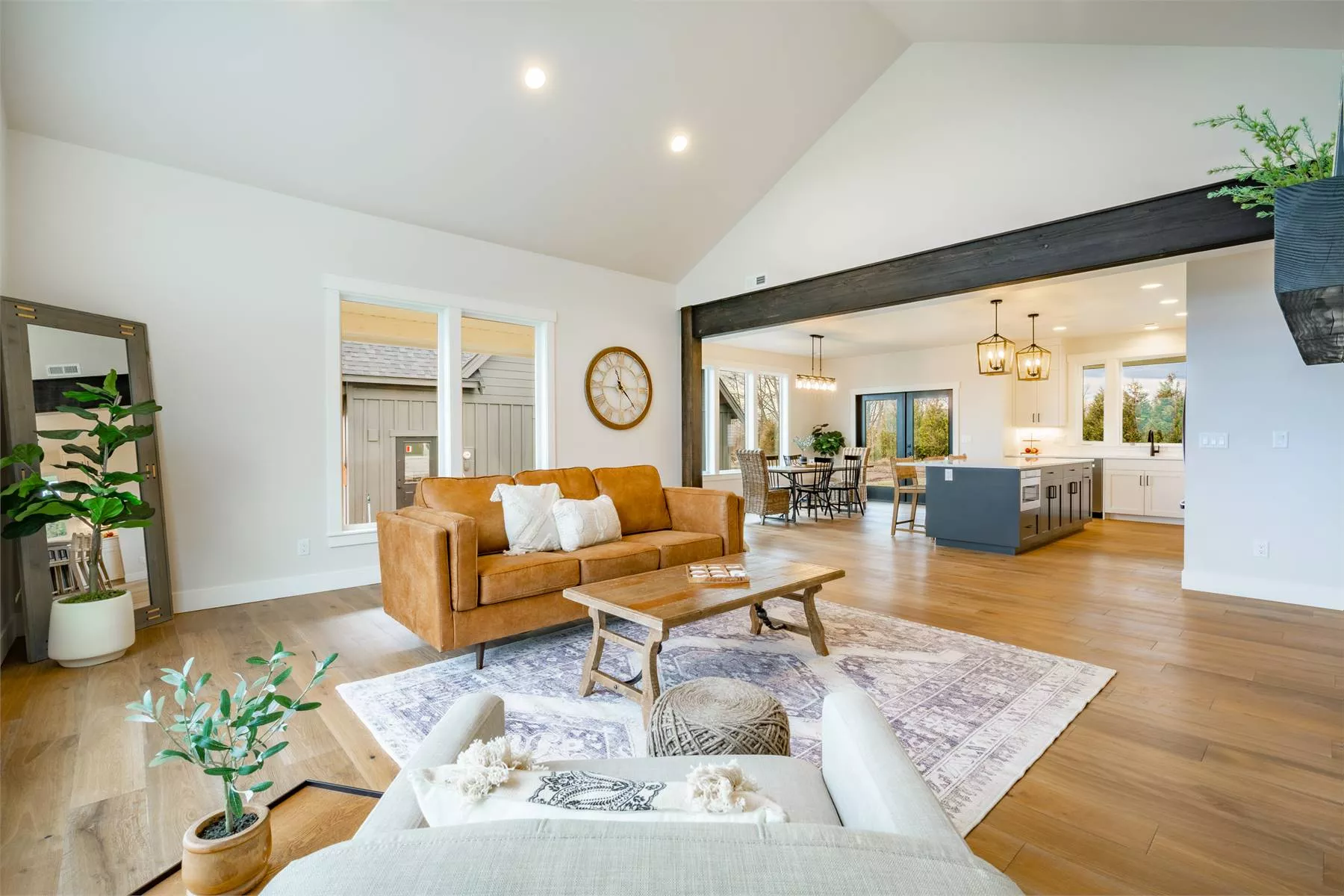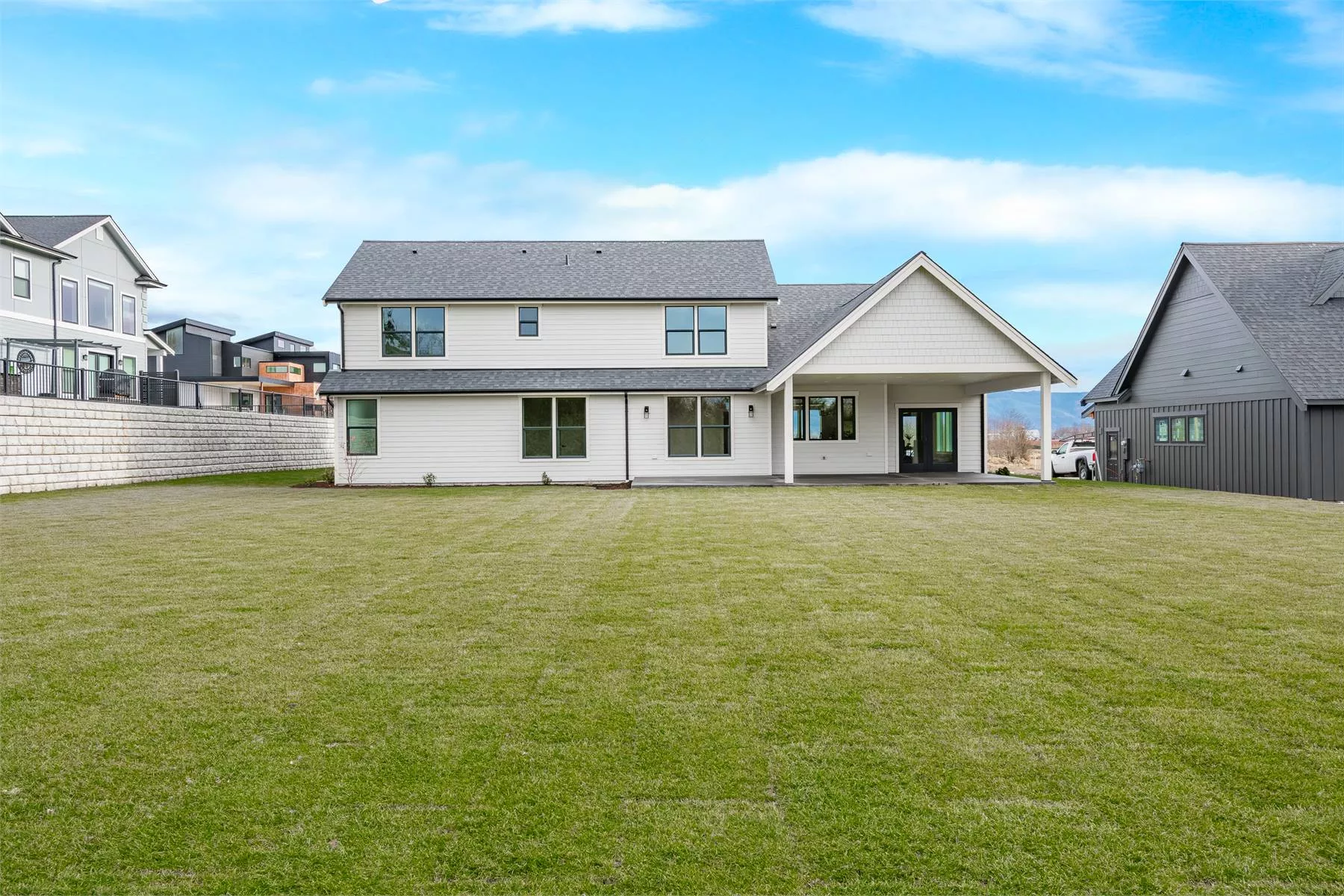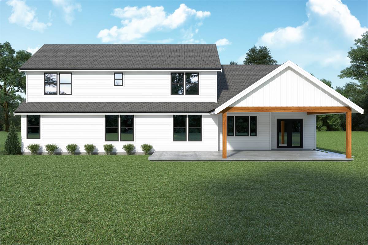 Welcome to this beautiful modern farmhouse consisting of 3,094 sf, 4 bedrooms, 2.5 baths and 2 car garage.  This striking two-story home has clean lines, large windows and a combination hip/gable roof.  The interior boasts a very nice living room with vaulted ceiling and wood beams giving an open and luxurious feel to the room.  The space is open to the large dining room and L-shaped kitchen with island.  French doors lead to the covered porch and patio which is a terrific place for entertaining.  Tucked behind the kitchen, just around the stairs, you'll find a small office for those work-at-home days and a nice-sized pantry for kitchen storage.  You'll pass the laundry room and powder room on your way to the beautiful master bedroom with ensuite bath.  The master suite is tucked away for privacy and serenity.  The ensuite bath is luxurious with its dual sink vanity, soaking tub, separate shower and walk in closet.  Upstairs, you'll find three secondary bedrooms, two with walk in closets, a shared bathroom and very large bonus room which can be any type of space you'd like.  This home is large and comfortable and perfect for your growing family.