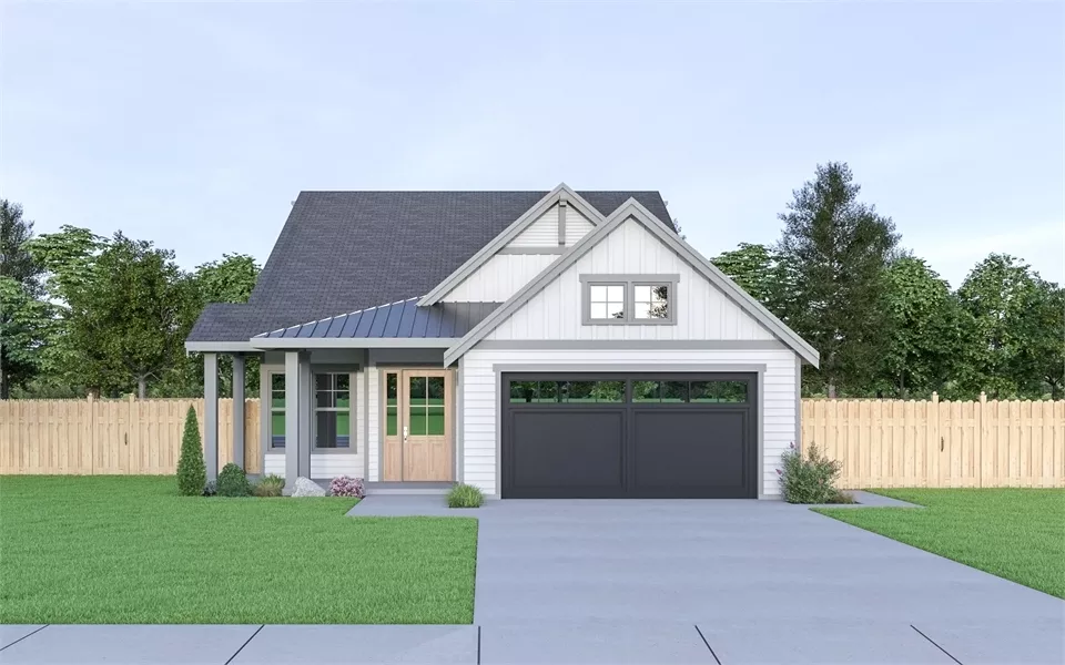 Perfect for a narrow or limited lot, this exceptional farmhouse style plan is both affordable and comfortable for a new or growing family. A one-story plan offers 1,611 square feet of living space, along with 3 large bedrooms and 2 bathrooms. Beyond the front porch and attached 2-car garage, enter to find a cozy den/office space, followed by a full bed and bath suite. Then you'll discover the kitchen and family room, and finally, the relaxing master suite, complete with a full bath and walk-in closet!