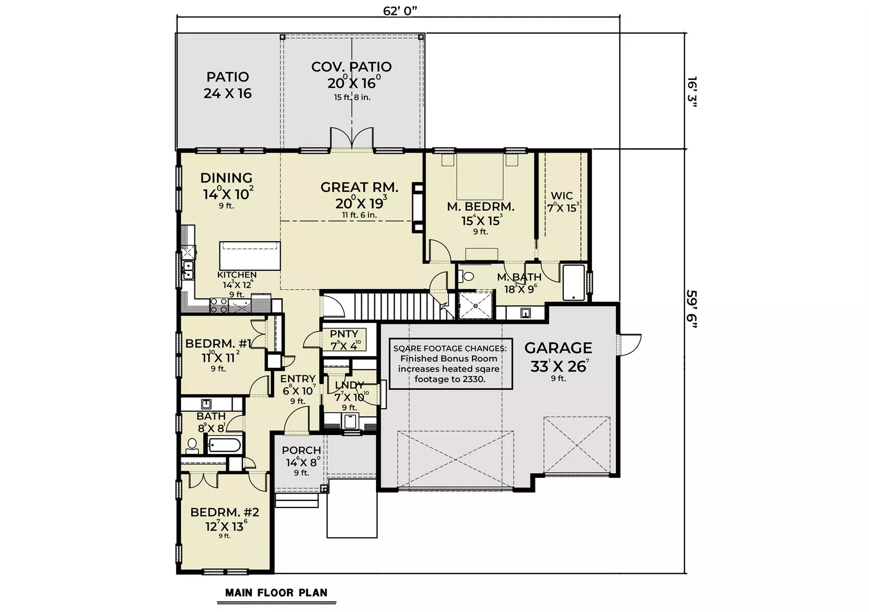 A marvelously versatile design gives this traditional Craftsman ranch a universal appeal. And now, you can see exactly what the amazing spaces will look like thanks to the inclusion of tons of real-life photos provided courtesy of a happy customer. Explore all that the 2,230 square foot layout has to offer. From the open main level with its 3 bedrooms and 3 bathrooms, to the bonus room that sits atop the attached garage and awaits your customization, there is so much to love. Also on the main level is your great room and island kitchen, as well as the covered patio and even the master suite. Auxiliary bedrooms can double as an office or playroom if you don’t need all the sleeping space.