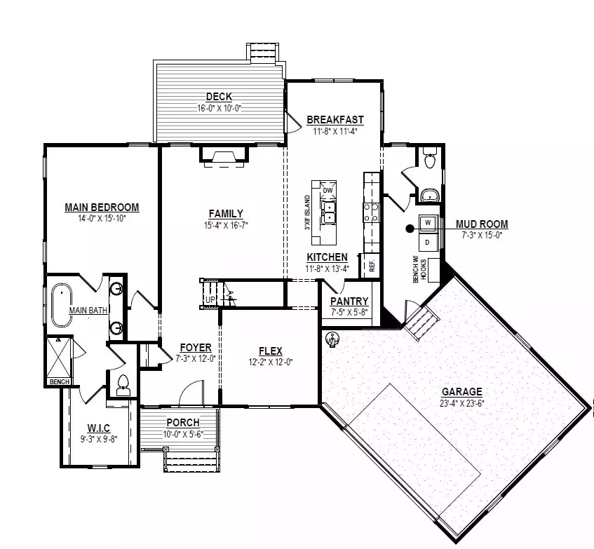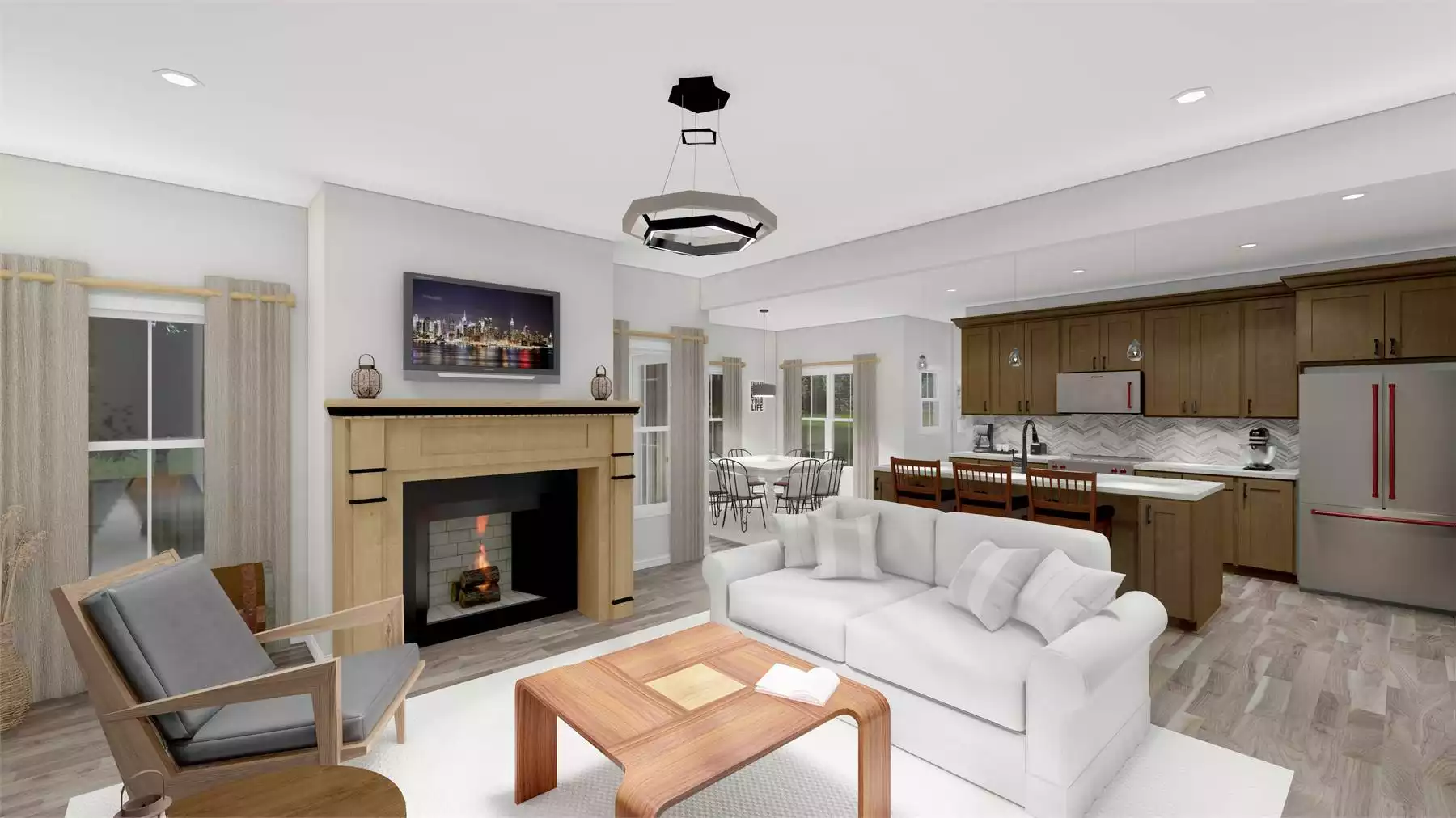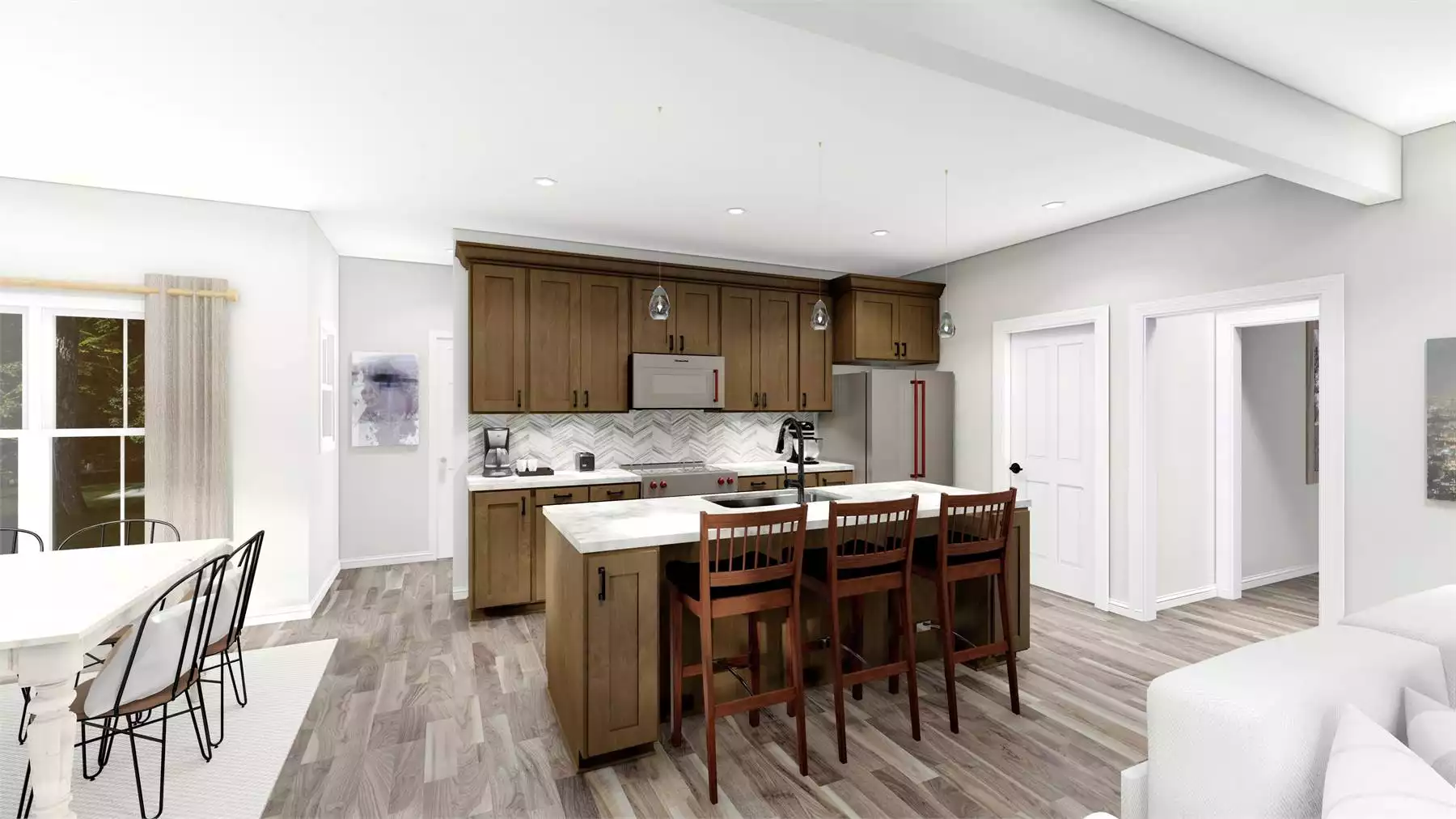 Youngsville blends Cottage Craftsman charm with farmhouse accents in a smart 2,246-sq-ft two-story layout. The main level features an open floor plan and a U-shaped island kitchen with a breakfast nook and walk-in pantry. A primary suite on the main floor includes a double vanity and a separate tub and shower. Upstairs you’ll find two secondary bedrooms plus a flex space/loft; an optional fourth bedroom is available (adds ~236 sq. ft.). Outdoor living shines with a welcoming front porch and a rear deck, while the courtyard/front-entry 2-car garage streamlines arrivals. At 68'5" x 58'0", it fits comfortably on a variety of lots.