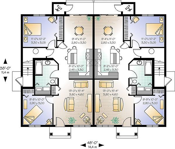 Each unit (912 sq.ft., 82.08 sq.m.): Family room, kitchen with island and lunch counter, dining room, 2 bedrooms, full bathroom with laundry facilities.