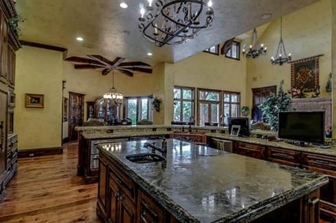 Upon entering the dramatic two story foyer, you will be drawn to the spiral staircase and openness into the living room with its built-ins, large bank of windows and warming fireplace. Adjacent to the grand foyer is the dining room with access to the butlery and kitchen for ease in serving. A bedroom with walk-in closet and full bath can easily have a private entrance through the portico and two car garage if you wanted to make it a teen or guest room. The master suite has its own safe room, exercise area, a lavish master bath with a spa bathtub and his and hers vanities, elegant bayed sitting area, large wardrobe, walk-in cedar closets, and a private patio. Centrally located is the family gathering area including the kitchen with a breakfast bar and free-standing island, offering plenty of counter space for any chef. You can also enjoy the fireplace on the veranda, especially nice in the cooler weather. The family room accesses the veranda for enjoying the outdoors. A media room has a corner fireplace and a bar from which you can pour yourself a glass of wine and enjoy the view. The guest suite boasts a private patio, large bathroom with separate shower and tub, a walk-in wardrobe, guest living, dining and kitchen area. This can also be used as an in-law suite. The four car garage offers a 15 x 22 shop. Upstairs there are three family bedrooms with walk-in closets and full baths, a private retreat, a game room with card area, galleries, balconies, a bonus room and future room for expansion. Enjoy the three story vaulted ceiling in the family room from the private gallery and balcony.