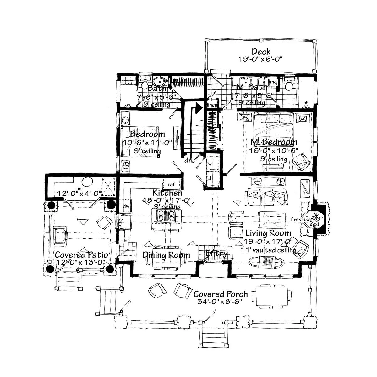 Each set of construction documents includes detailed, dimensioned floor plans, basic electric layouts, cross sections, roof details, cabinet layouts and elevations, as well as general IRC specifications. They contain virtually all of the information required to construct your home. The typical plan set does not include any plumbing, HVAC drawings, or engineering stamps due to the wide variety of specific needs, local codes, and climatic conditions. These details and specifications are easily obtained from your builder, contractors, and/or local engineers.