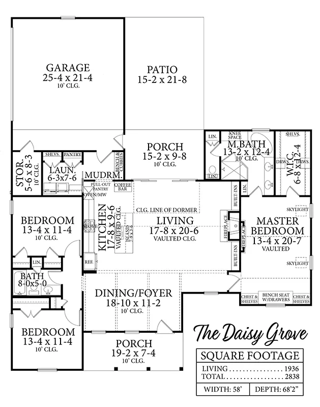 We took one of our customers’ favorite plans, THD-7429, and added all of our best Architect Preferred Products directly into the plans for you to use! With the addition of huge Marvin Multi-Fold Doors leading from the great room out to the covered patio, along with yet another gorgeous Eldorado Stone fireplace in the master, this plan has it all! Sleek lines and simple designs define this modern farmhouse style plan. Offering 1,936 square feet of living space, this 3 bedroom, 2 bathroom home is a wonderful plan for the home buyer or family who values affordability and style. A single story layout and an open concept design makes this home feel much more open and larger than it already is. A chic updated façade offers some unique curb appeal, while the covered front porch and entryway pulls you immediately into the foyer and formal dining room. Much of this house has 10’ ceilings the whole way around, making the rooms feel grander and the space feel larger. To the left of the foyer is a small hallway and 2 bedrooms with a shared full bath. This space is secluded enough to make it a great option for kids or guests, or even a home office if necessary. Back to the main spaces of the home, past the dining room is an open country kitchen and island which flow directly into the living room. This thoughtful design allows the space to feel vast yet inclusive, great for entertaining or family get-togethers. Finally, the master suite can be found on the far right-hand side of the home. A relaxing and luxurious space, the bedroom features vaulted ceilings, an electric fireplace, and a spacious walk-in closet. In the bathroom, you will find a spa tub, as well as a custom-built shower. As an added bonus, this home provides a 2-car garage, great for storage and easy access. This plan’s reduced footprint makes it wonderful for a narrow or limited lot.