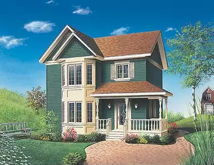 Victorian Modest in size and perfect for a narrow lot, this charming Victorian cottage offers all the features required for family living plus some stylish extras. Stacked bay windows provide bright seating areas in the living room and master bedroom and create a lovely exterior focal point. Accessed from the wrap-around porch, the foyer leads to the living room to the left or carry on to the kitchen with adjoining dining area. The main level amenities are completed by a laundry room and powder room. Upstairs, a master bedroom with his and hers walk-in closets and two additional bedrooms share a bathroom with dual vanity and independent shower and bath.