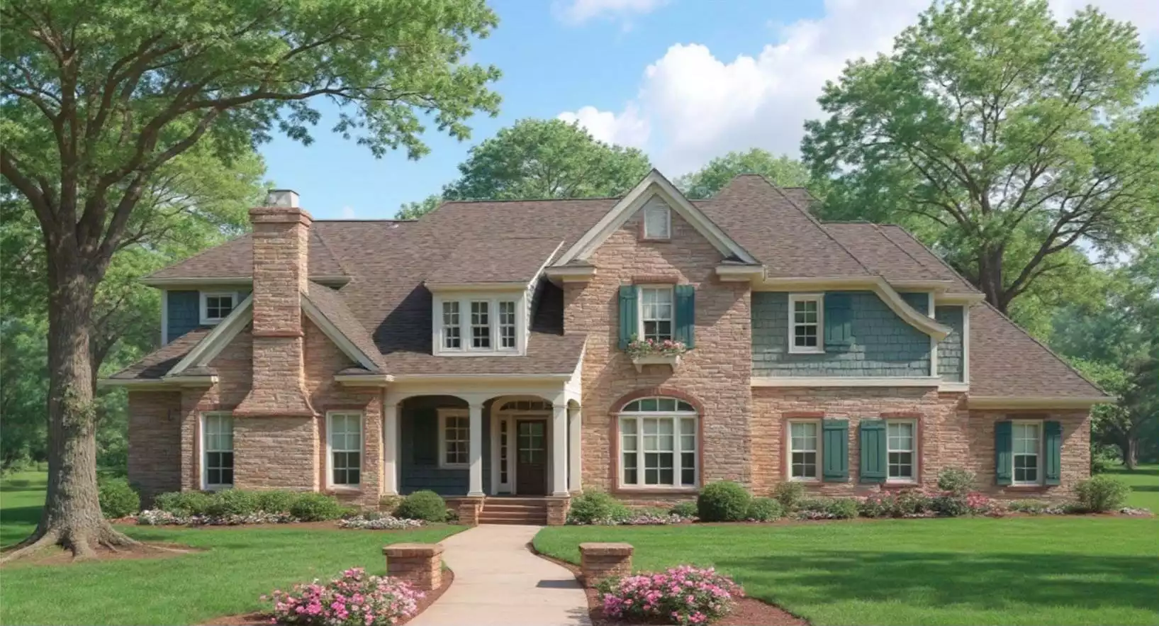 Cottage styling gives this large executive home warmth and curb side appeal. Inside, the two story Living Room boasts a Romeo balcony overlook and a clear vista to the rear yard. The Kitchen, Breakfast Room and Family Room are efficiently grouped and provide an oversize, roomy area for food preparation, family activities and dining. The formal Dining Room is accented by a tray ceiling. Located off the two story Foyer, the Study/Home Office features a cozy fireplace and a stunning 14 foot vaulted ceiling. The Master Suite has all the luxuries including a 12 foot tray ceiling and sumptuous Master Bath with his and hers vanities, shower, corner whirlpool tub and his and hers walk in closets. Upstairs, Bedroom 2 features a private Bath. Bedrooms 3 and 4 share a Bath but each has its own vanity/dressing area. A large Game Room completes the plan.