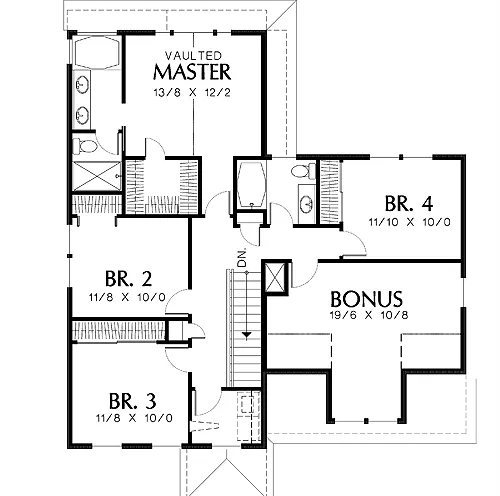 The master salon is vaulted and has a walk-in closet and a bath with separate tub and shower and dual sinks. Family bedrooms share a full hall bath. Develop the bonus space into an additional bedroom or home office in the future.