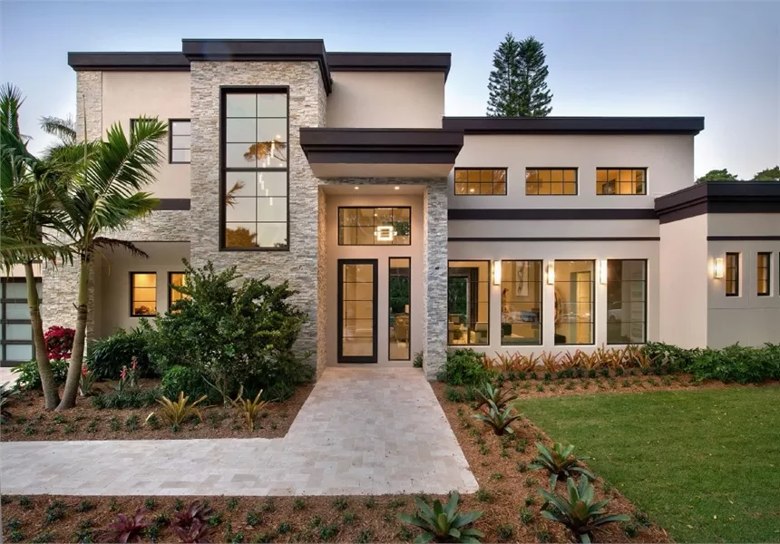 This is a beautiful Contemporary Modern Florida styled home with six bedrooms, five bathrooms and two half bath. The two-story home design is simply stunning and so spacious. The exterior of the home has a gorgeous covered lanai, perfect for entertaining friends and family. The pool in the back of the home is breathtaking and really sets the tone for this warm climate home. In addition to the attached three car garage there's an eight car detached garage, perfect for the the car enthusiast.