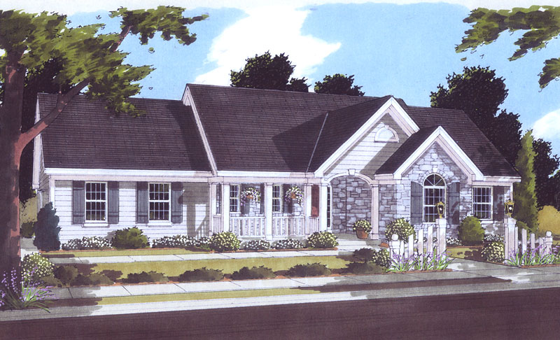 A quaint twist on a traditional style plan, this 1,611 square foot, 3 bed 2 bath plan feels surprisingly larger than it already is. A great covered front porch is only outdone by an even better interior. Inside you move past the foyer and in to the heart of the home, the great room with its 10’ ceilings. Directly nearby you’ll love the dining room and open peninsula kitchen, which flow directly out on to the screened in porch, great for lovers of the outdoors. The other side of the home provides the master suite and its walk-in closet and spa bath, as well as two other large bedrooms and a shared full hallway bath. For future expansion, this home comes with plans for an unfinished basement, effectively doubling your square footage when you decide to finish it.