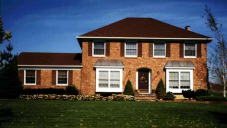 This elegant home is easy to build. It provides simple appeal and a very functional floor plan. I designed it as a center hall plan, where the formal rooms are up front and the informal straddle the rear. Note the serving pantry to the dining room. For an elegant circular stair in the foyer see our plan no. 3767.