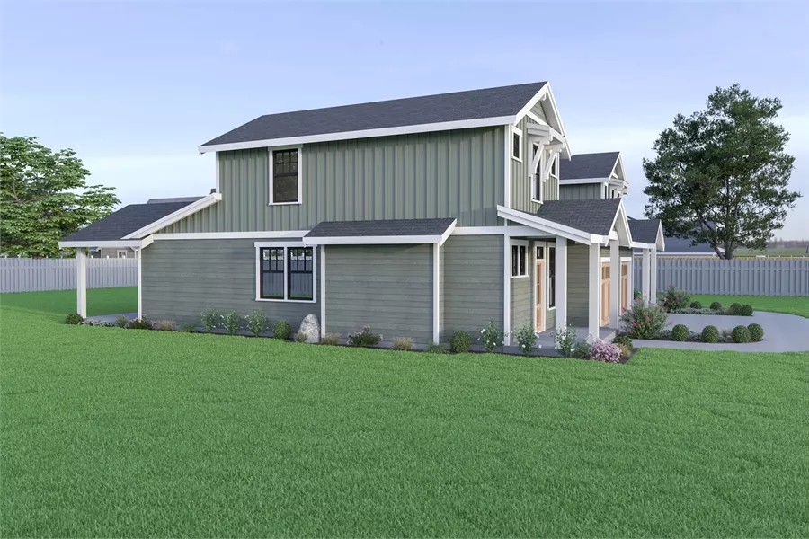If you are looking to save some money but maintain the privacy and comfort of your own home, this Craftsman duplex may be just what you are looking for. Each unit has 1,446 square feet along with 3 full bedrooms and a private garage. In fact, the only major shared walls between these plans is between the garages and their first floor master suites, meaning that these plans truly feel separate and private. Notice how each side has an attractive and open layout, offering an open living room and galley kitchen, along with two covered porches! Each plan has walk-in closets and storage galore, including in their upstairs bedrooms, perfect for kids and guests to enjoy their own space and convenient comfort.