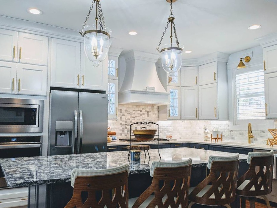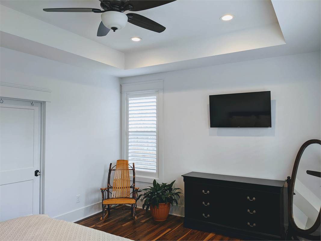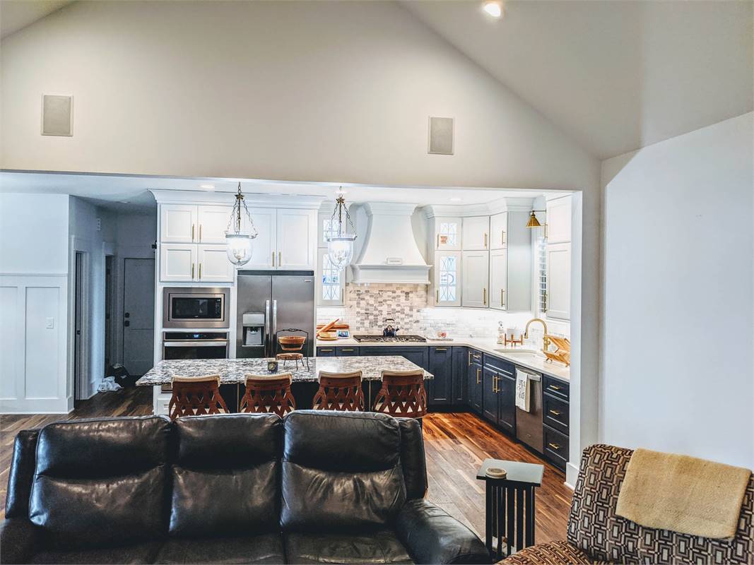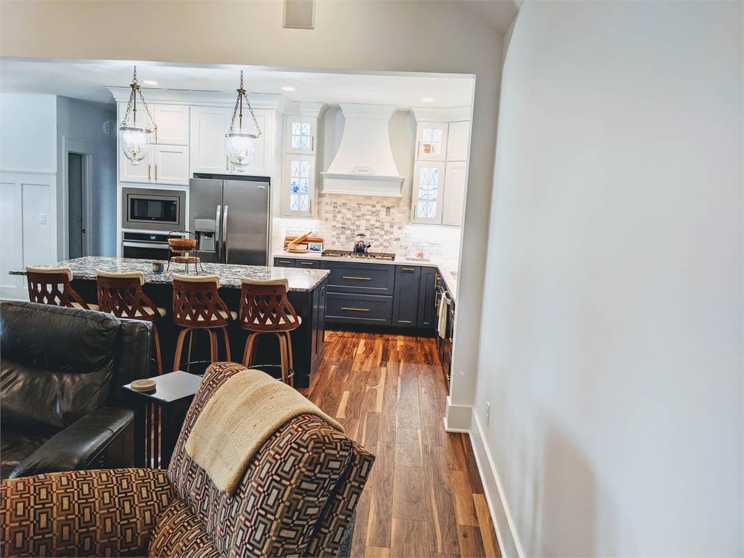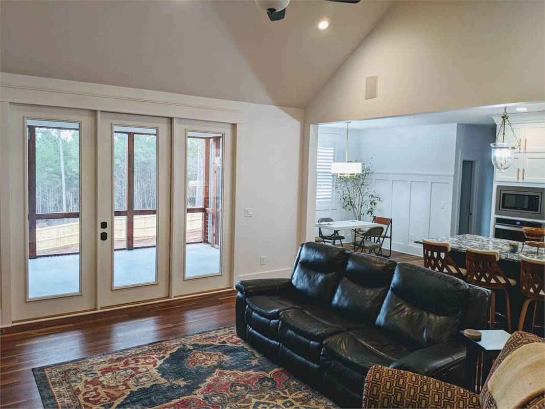 The 11' tall family and kitchen are wide open and include lots of view and natural light to the rear via french doors and large windows.