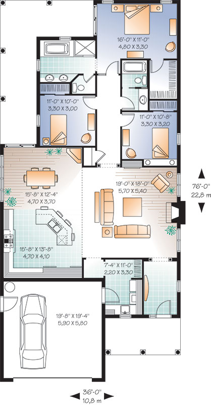 Suited for narrow lot