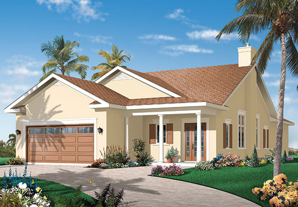 Can you imagine a lovelier home than this one-story Mediterranean design? Inside, the main gathering place will be the sizable great room. The wide-open kitchen is a chef's dream, complete with an angled island. The versatile dining area offers sliding glass doors to a breezy wraparound porch. A garden tub and a separate shower are highlights in the quiet master suite. The children's bedrooms make good use of a compartmentalized bath.