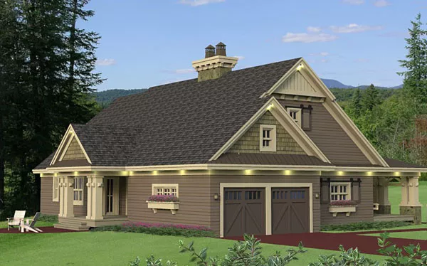 A lovely exterior wraps this one-story cottage design. Inside, the island kitchen flows into the cozy great room. A flex room can be whatever you wish. The deluxe master suite is secluded for privacy.  Two Jack-and-Jill bedrooms enjoy a shared bath. A versatile bonus room sits above the garage.