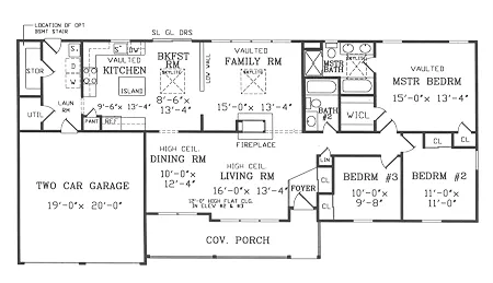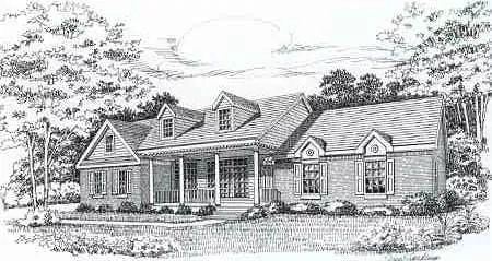 I designed this home to be a practical and affordable ranch that lives much larger than it is. Open planning expands interior spaces like the dining room and living room. A two-way fireplace in the center of the home warms both the living and dining rooms on one side, and the family room on the other side, with its vaulted ceiling topped with a skylight. Plenty of workspace is apparent in the large kitchen, complete with a center island workspace and breakfast area, as well as a second skylight. It enjoys a beautiful relationship with the adjoining family and breakfast rooms. The master bedroom, full bath and two additional bedrooms complete this lovely plan.