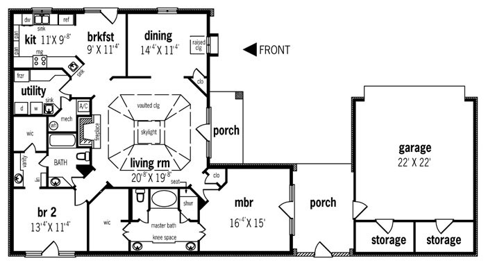 Designed especially for narrow lots, this 2 bed room design has virtually no wasted space. The living room features an unusual tray ceiling and wood burning fireplace. The kitchen has a wet bar ideally located and great for entertaining. The master suite bath has a large walk-in closets, soaking tub, separate shower, his and her vanities and a private toilet area.