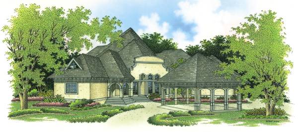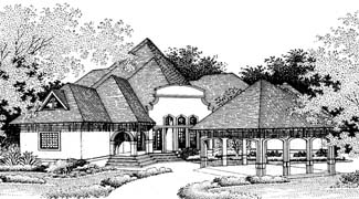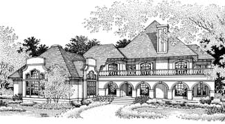 For those who desire every imaginable luxury, this Mediterranean style home has a plush master suite complete with his and her bath arrangements. The secondary bedrooms are entered from a central octagon foyer with a center fountain and all rooms are the same size with equal features insurance to keep kids from fighting over the rooms. A wet bar is conveniently located to serve guest in the living or game room. A sewing room and gym add to the many extras found in the opulent home. This super energy saving design has 10 ceilings with 2 story ceilings in the Living room and Entry.