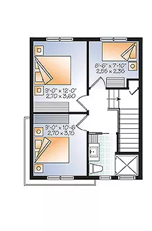 This unique three-story contemporary design is sure to draw compliments from neighbors. The narrow width makes the home suitable for just about any lot. The garage and laundry room are situated on the ground level. The second floor hosts the cozy living areas. Sliding glass doors access a rear deck, while French doors open to a front balcony. Two bedrooms and a small nursery share the top floor with a well-planned bath.