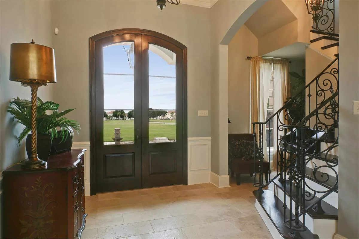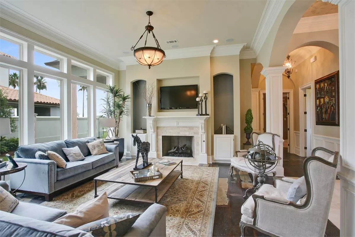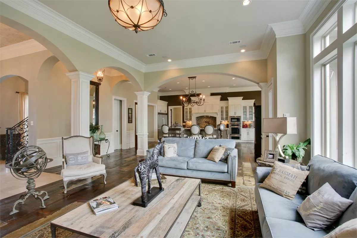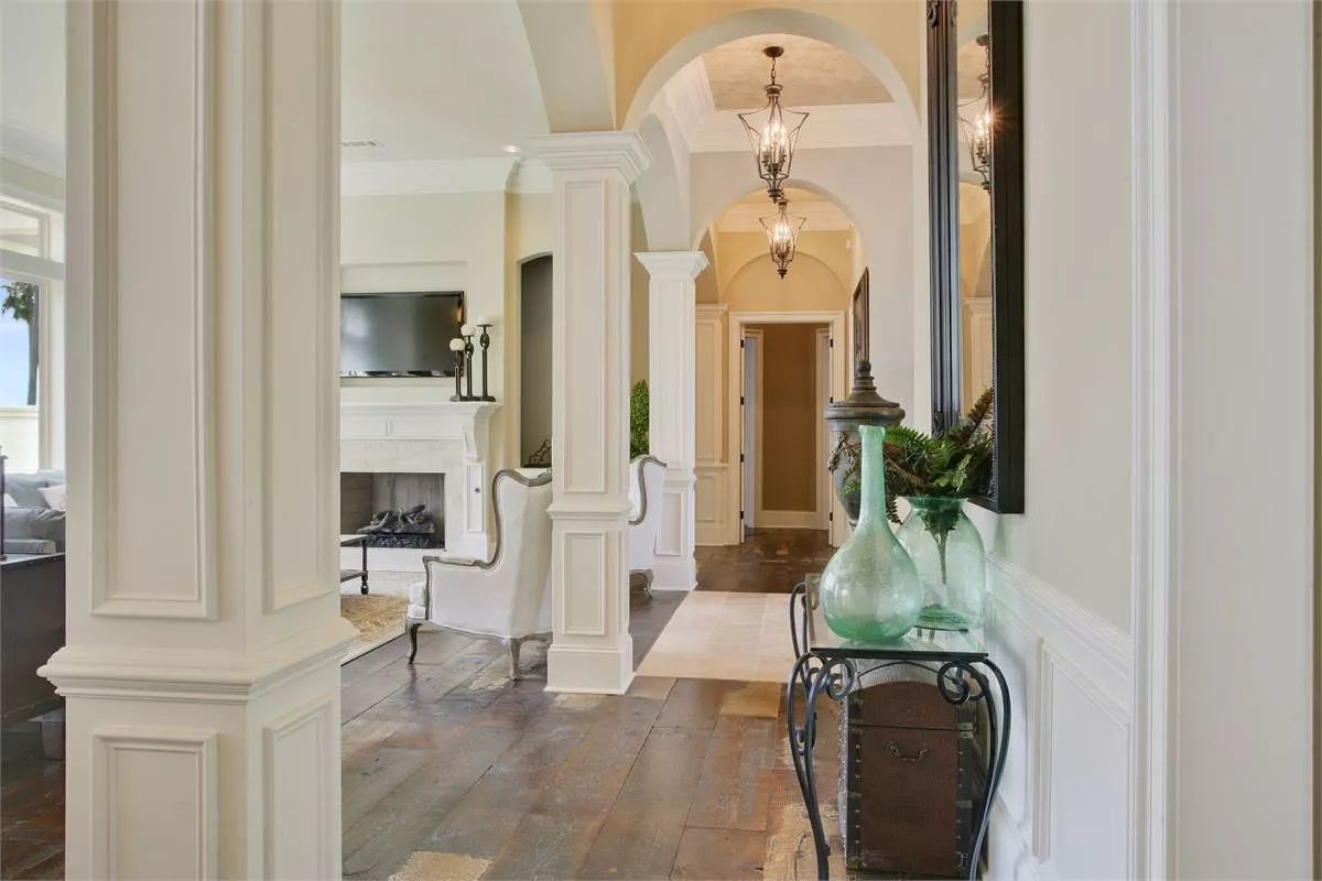 Dignified symmetry is the hallmark of this five-bedroom European design. Guests are warmly welcomed in the foyer, and ushered into the spacious family room for good conversation by the fireplace. When dinner is ready, another fireplace enhances the formal dining room. The island kitchen is "magnifique," with its endless counter space and bright breakfast nook. Note the handy catch room, where laptops, briefcases and other belongings may be deposited, keeping clutter out of sight. How will you use the studio space behind the garage? Perhaps you're a budding artist! At the end of a long day, retire to the luxurious master suite. Your guests will appreciate having their own designated quarters. Three more bedrooms and other unique spaces are found on the upper level.