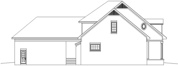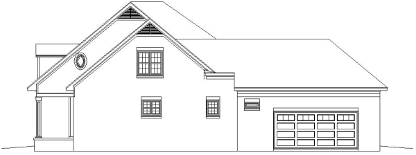 Traditional with unusual appeal, this wide porch with triple dormers above, leads to a foyer flanked by arches to a study and a formal dining room with recessed ceiling. The great room with fireplace and access to the covered back porch rests comfortably next to the full-featured master suite with enormous closet. The delightful kitchen sits conveniently in front of a large utility room with space for freezer, table and shelves for supplies and crafts. The double garage hides at the back corner of the house with a very large storage room in it, as well. Four bedrooms, three and one-half baths, and an expandable area for a recreation room give this plan great flexibility.
