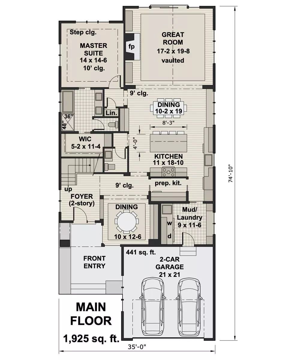 Great for a narrow lot, this gorgeous 2-story farmhouse is packed full of great style and unmistakable personality. A comfortable layout has been designed to feel open yet cozy and inclusive, offering 2,870 square feet of living space. The first floor finds all of your main living areas, including the beautifully vaulted great room, the eat-in kitchen and dining room, and even a nearby prep kitchen. Think about how great that these spaces will be for entertaining crowds big and small! The first floor also has the master bed, bath, and walk-in closet, all of which are conveniently accessible. Upstairs finds the other 3 bedrooms, each with their own walk-in closet and nearby bathroom space. Finally, notice the expansion possibilities with the addition of a future bonus room space which sits above the 2-car garage.