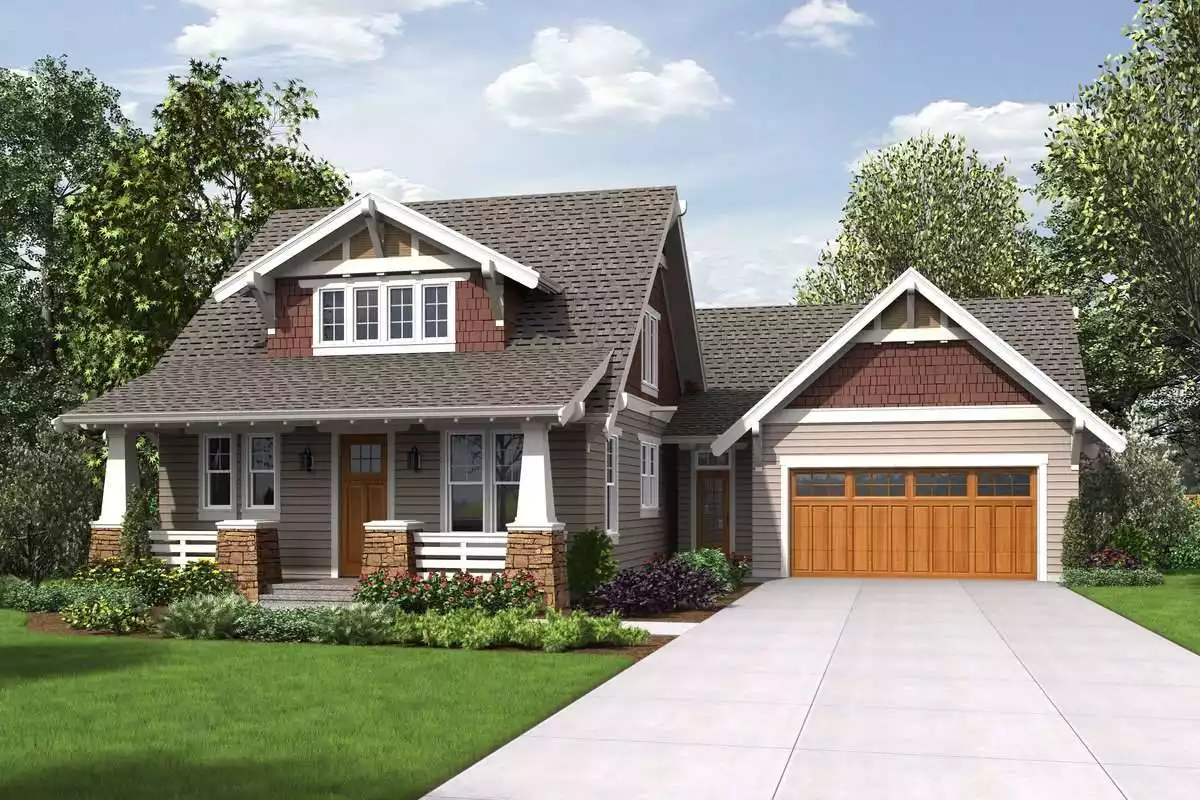 Fall in love with this charming Craftsman cottage plan and its sprawling layout. With 2,292 square feet of living space, including things such as a 2-car garage, 3 bedrooms and 2.5 bathrooms, this home is everything that you could want out of a beautifully affordable plan. Enter the home from one of 3 front entries, the main covered front porch, the secondary covered side porch, or from the garage which features its own shop space. If you choose to use the main entrance, you will find yourself in the grand foyer with a powder room to your left and a home office to your right. The garage and side entrance both open to a mud room and laundry room which then flows into the gourmet island kitchen, where all of the entryways meet. Thanks to an open concept, the kitchen joins with the dining room and a cozy vaulted living room to create a beautifully inclusive space. Access to the rear covered porch is found from two different places: the living room or the first-floor master. You’ll be amazed by this spacious master suite and its vaulted ceilings, spa style bathroom, and large walk-in closet. Finally, the journey throughout this home comes to an end as you move upstairs to discover an open-air loft alongside two large bedrooms and a full bathroom - a great space for children who need an area that they won’t outgrow!