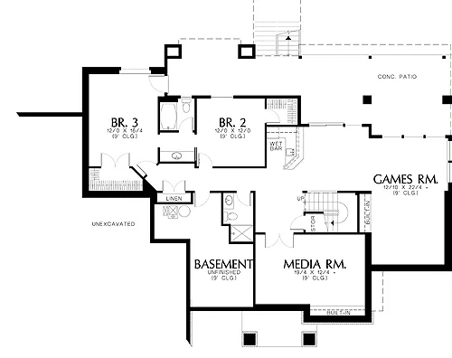 Downstairs, two bedrooms share a compartmentalized bath. In addition, there's a bath with a shower. There are also a media room and a huge games room with built-in storage and a wet bar. Sliding doors open to the concrete patio.