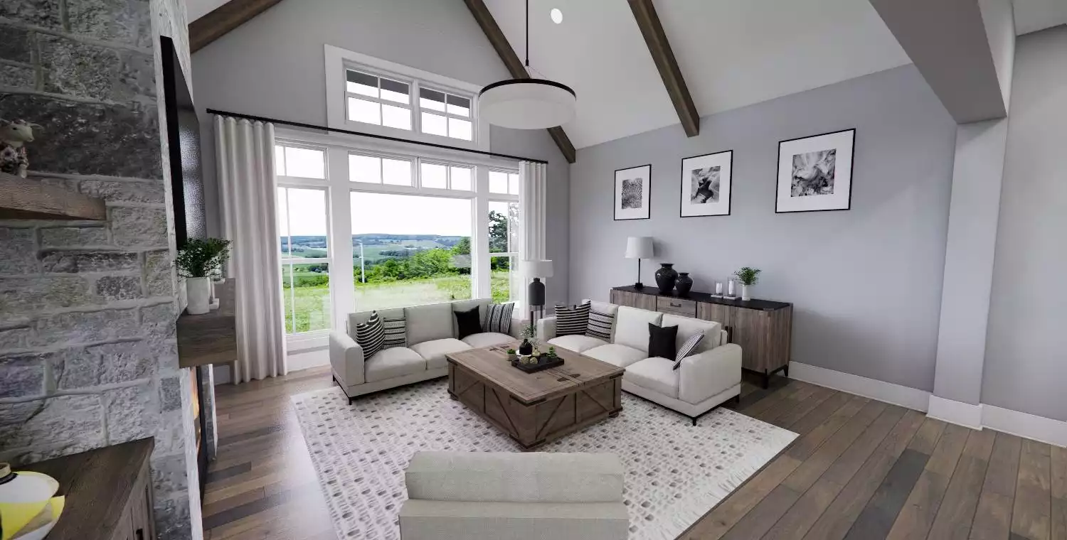 With tons of options for customizations to perfectly fit you and your family, it’s no wonder that this amazing modern farmhouse-style plan is one of the best-selling homes available. Bursting with unforgettable style and ample curb appeal, the 2,364 square foot floorplan is both comfortable and accessible, thanks to its ranch-style layout. Plus, 3 bedrooms and 2.5 bathrooms provide ample comfort for kids and guests alike. The biggest area of customization for this home comes in the form of its garage and entryway, as well as the bonus room that sits above. Choose from side or front entry garages, with space for 2 or 3 cars. Each option is full of storage capabilities and opens into the same convenient mudroom, complete with lockers for the kids’ shoes and bags. The rest of the main floor has a natural flow throughout. Notice how the 11’ dining room joins the gourmet eat-in kitchen and vaulted great room together seamlessly. The 3 bedrooms are nestled away at the other end of the home, including the master with its relaxing spa en-suite and its dual his and hers walk-in closets! Other highlights of this home include its 2 covered porches and the bonus room above the garage, perfect for flexible uses and future expansions.