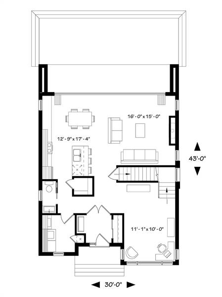 This 2,063 square foot contemporary modern house plan has a lot of natural light, and 9 'ceiling's throughout the main floor. When walking in to this beautiful design, there is a closed foyer with a coat closet. On the main level you will find a conveniently located home office or 4th bedroom. The spacious master suite has a private balcony, good size walk-in closet, and private bath. Inside the well designed kitchen is plenty of counter space, a kitchen island and a good size pantry. The living room is a great place to wind down and relax with the warmth of the fireplace. Folding patio doors in the dining and family room area open up leading you to a covered terrace at the rear of the house. A half bathroom and laundry room is centrally located off the kitchen. Two secondary bedrooms share a very large bathroom with separate shower and bathtub. The unfinished basement can be easily finished for additional bedrooms, storage, home theater, etc.