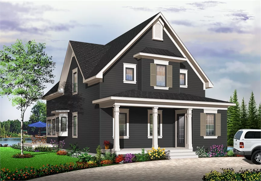 Inside this 2,066 square foot is another remarkable chalet inspiration This lovely country, rustic style chalet has incredibly abundant fenestration which is definitely one of the major highlights of this delightful home. The wider balcony off the upstairs master bedroom adds a superb cachet and increases access to panoramic views which is just another feature that is sure to please its occupants! Inside the home in front just beyond the beautiful gallery is a large entrance foyer complete with abundant closet space. A nicely sized master bedroom, full  bathroom and separate laundry area are all found on the main level of this beautiful home. The open floor plan of the family area adds to the spacious and airy feeling created by the 9' ceilings throughout and windows through which to enjoy the view all around. A bay window above the sink in the kitchen adds charm and a central island is the perfect place from which to enjoy casual meals and warm conversation! The two other bedrooms on the second level include a second master suite with walk-in closet and double, glass pained access doors. The large vanity, separate toilet enclosure and large corner shower are practical features of the master bathroom upstairs. The full basement foundation with 8' ceilings can be finished to add extra bedrooms or even a multi-media room or home theater and a walk-out basement is an available option that could be perfect for a hillside or waterfront lot .