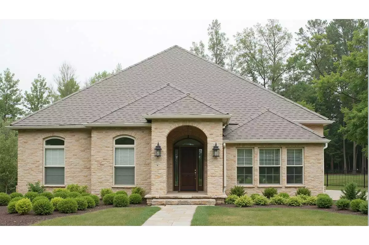 As you walk through the covered porch and elegant double doors, a large foyer directs the incoming guest to an octagonal great room which includes a large glass wall, fireplace and a 20 ft. cathedral ceiling. The formal dining room overlooking the great room includes a 10'-6" tray ceiling. The family room and kitchen area with a 16'-10" sloped ceiling.The master suite flaunts a 13 ft. tray ceiling.