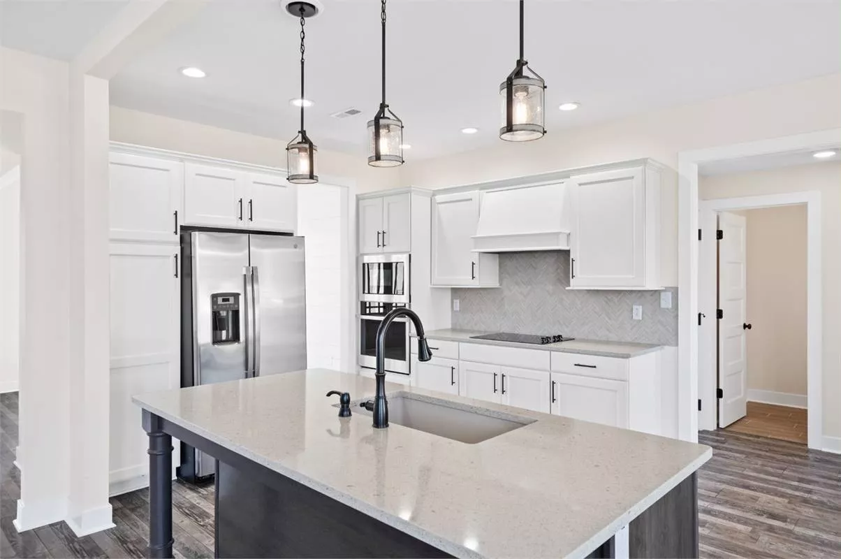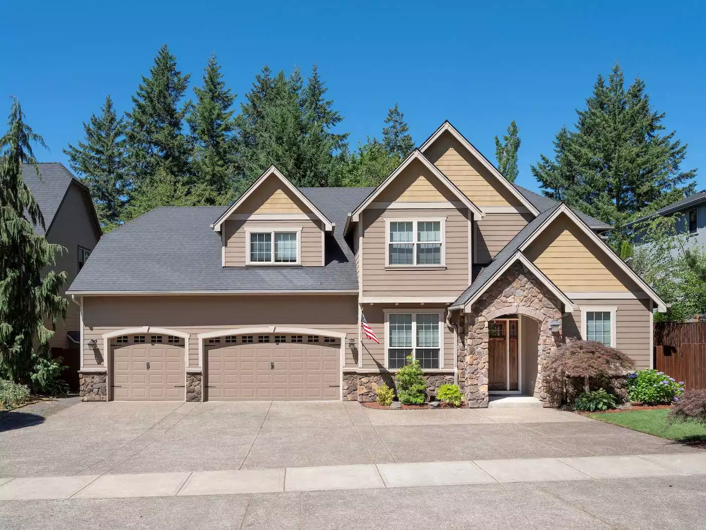 Sleeping quarters are upstairs and include three family bedrooms and a master suite. Look for a spa tub, separate shower, dual sinks and a walk-in closet in the master bath. Family bedrooms share a full bath with double sinks.