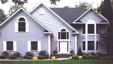 This eye-catching executive home boasts a two-story bay window and unique transoms above both the front door and the garage doors. An equally dramatic interior is prefaced by a two-story-high foyer, which leads into the bayed living room and the adjoining dining room. The gourmet kitchen features an island cooktop, a sunny sink and plenty of counter space. The bright breakfast area and the sunken family room each have sliding glass doors to the optional deck. A fireplace warms the entire area.The master features a volume ceiling, huge bath, two large walk-in closets and a sitting room.