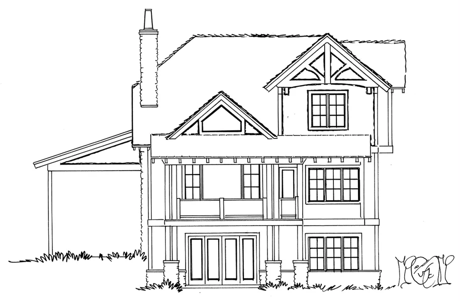 Columns and stone accents adorn the façade of this Craftsman house plan, with five bedrooms, 3.5 baths and 2,687 square feet of living area, including the basement level. Beyond the front porch of the home plan, gather your friends in the vaulted great room, where a fireplace adds ambience. The open kitchen offers an island snack bar for four, as it serves the versatile dining room. The rear porch is nice for al fresco dining. The deluxe master bedroom is located on the main floor for convenience. The private bath hosts a large sink, a sit-down shower and a walk-in closet. On the second floor of the home design, two additional bedrooms share a compartmentalized bath. On the basement level, the family room accesses a covered patio via sliding glass doors. Two more bedrooms share a split bath. Builders point out the cozy den off the kitchen.