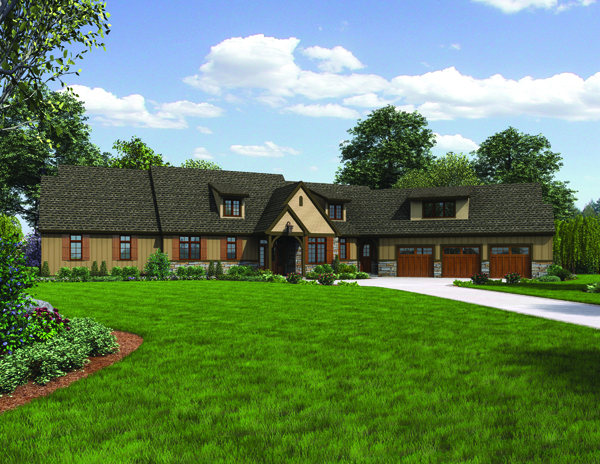 Ideal for acreage, this home design offers lots of luxury without waste. Transitional spaces are kept to a minimum, while rooms are well defined and accessible - this home plan is extremely livable. A large feature foyer leads to an open great room and gourmet kitchen. Expansive windows look out to available views, while a large covered patio provide a great connection to the outdoors. The Master suite is fit for a king, and four additional bedrooms and a guest suite provide sleeping spaces for all your extended family. Additional spaces include fantastic office and laundry spaces, a mudroom, fantastic balcony overlooking the great room and a huge bonus room.
