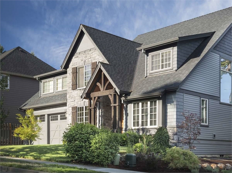 This 5-bedroom stunner features a striking, cross-gabled roof, cedar shingle siding and decorative, impermeable stone along its dramatic faade. Inside: high ceilings make an impression (from the breathtaking, two story great room and vaulted master suite to the vaulted entry and upstairs loft space) while an intimate dining nook, a butlers pantry, multiple bonus spaces and comfortably private bedrooms ground the open, malleable layout. With a three-car garage, attic storage, plentiful built-ins and a large storage/closet space on the main: youll find this homes conscious construction as fetching as its aesthetic.