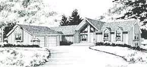 This home is designed especially for a walk-out basement condition, although it could be built as a conventional ranch, as well. An optional solar greenhouse and expansive backyard deck are sure to charm the outdoor enthusiast. All major rooms orient to this beautiful rear, including the great/living room, formal dining room and spacious eat-in kitchen. The handsome vaulted living room boasts a rustic fireplace with a slate hearth. The l-shaped garage enables ease of placement on sloping lots, while creating an attractive motor court. The master bedroom features a private balcony and a nifty window seat. The lower level, which is included within the 2411 sq.ft shown, can be finished later if desired. needed.