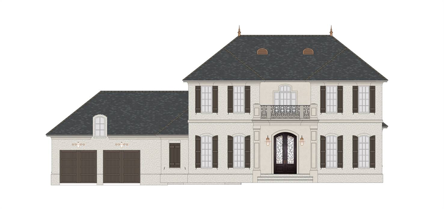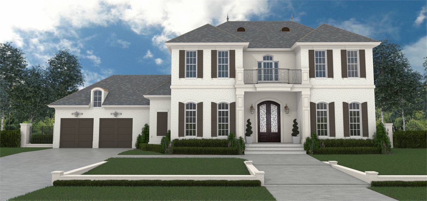 This gorgeous French country home design offers up to five bedrooms. The modern kitchen could not be more open and welcoming. Note the oversized pantry, just steps away. The posh master suite is just what you would have designed for your dream home. The front-facing guest suite could serve as a home office if you desire.