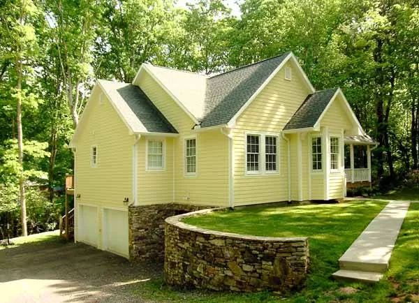 There's no reason that a modest, affordable ranch can't be adorable and fabulous to live in as well. I designed this lovely home to be all that and more. An open floor plan, with windows in all directions, makes the entire living area feel larger than it is. An optional attached garage is included on the blueprints - or as part of the optional walk-out basement plan as shown in the photo.