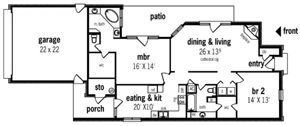 Designed especially for narrow lot or Zero lot line projects, this 2 bedroom unit is ideally suited for developments that feature a rear alley garage entrance. The living dining room combination features an impressive vaulted ceiling and large wood burning corner fireplace. The bed rooms are generous size and boast large walk-in closets.