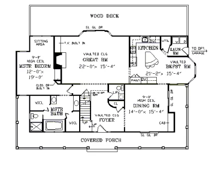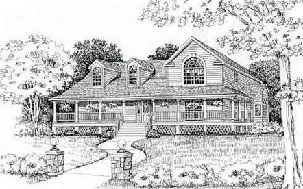 The decorative dormers and expansive wraparound porch make this home a charming country wonder. The interior features a vaulted foyer, vaulted Great Room with built-in television area, fireplace and sliding glass doors to the rear, wood deck. The kitchen is a treat with its bayed-window, vaulted breakfast area, center island and spacious pantry. You'll love the private master suite with its high ceilings, sunny sitting area, walk-in closets and master bath with a whirlpool tub, separate shower and dual sinks. A detached garage is readily located near the side kitchen door. See plans 6331 or 5136.