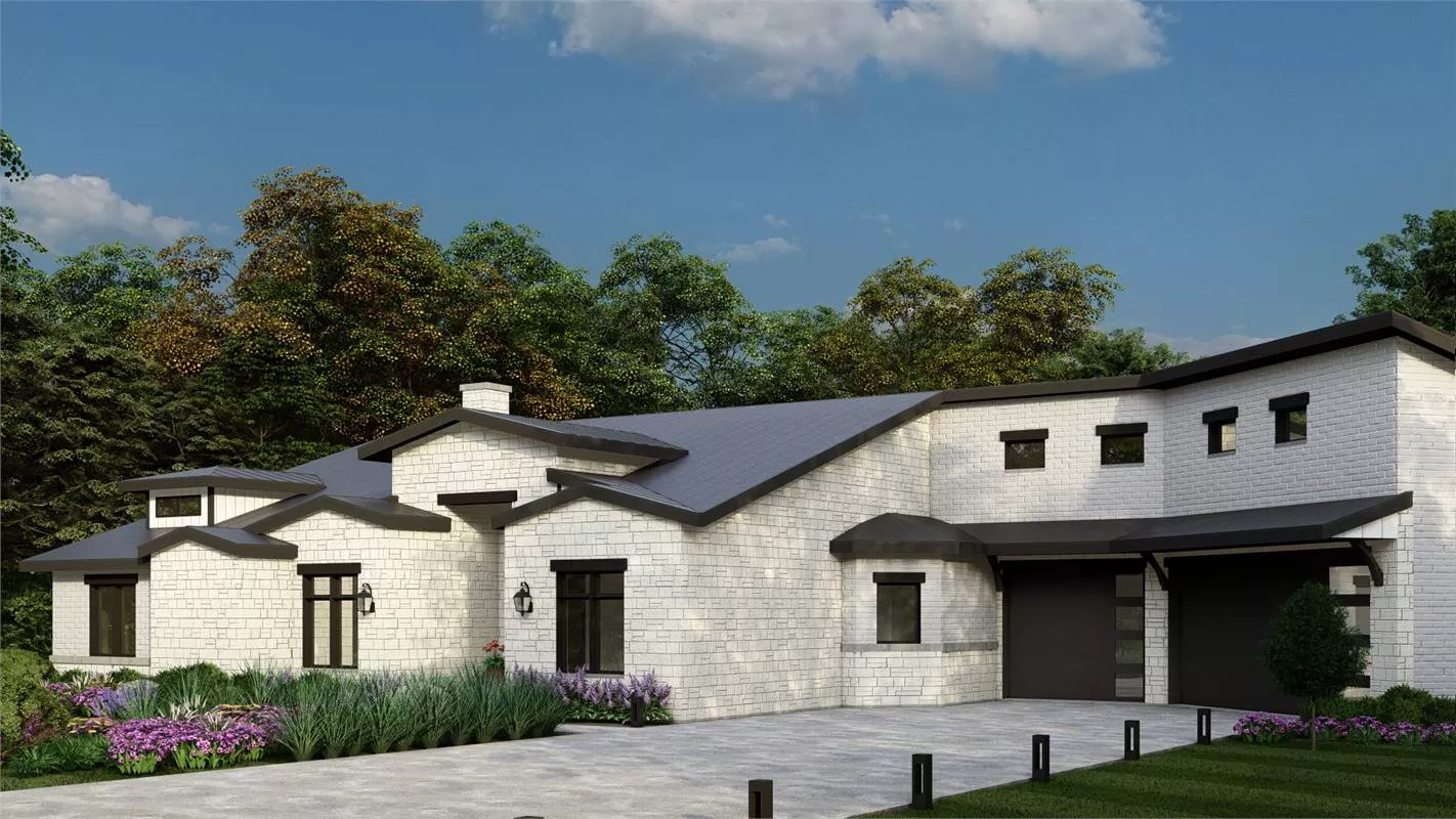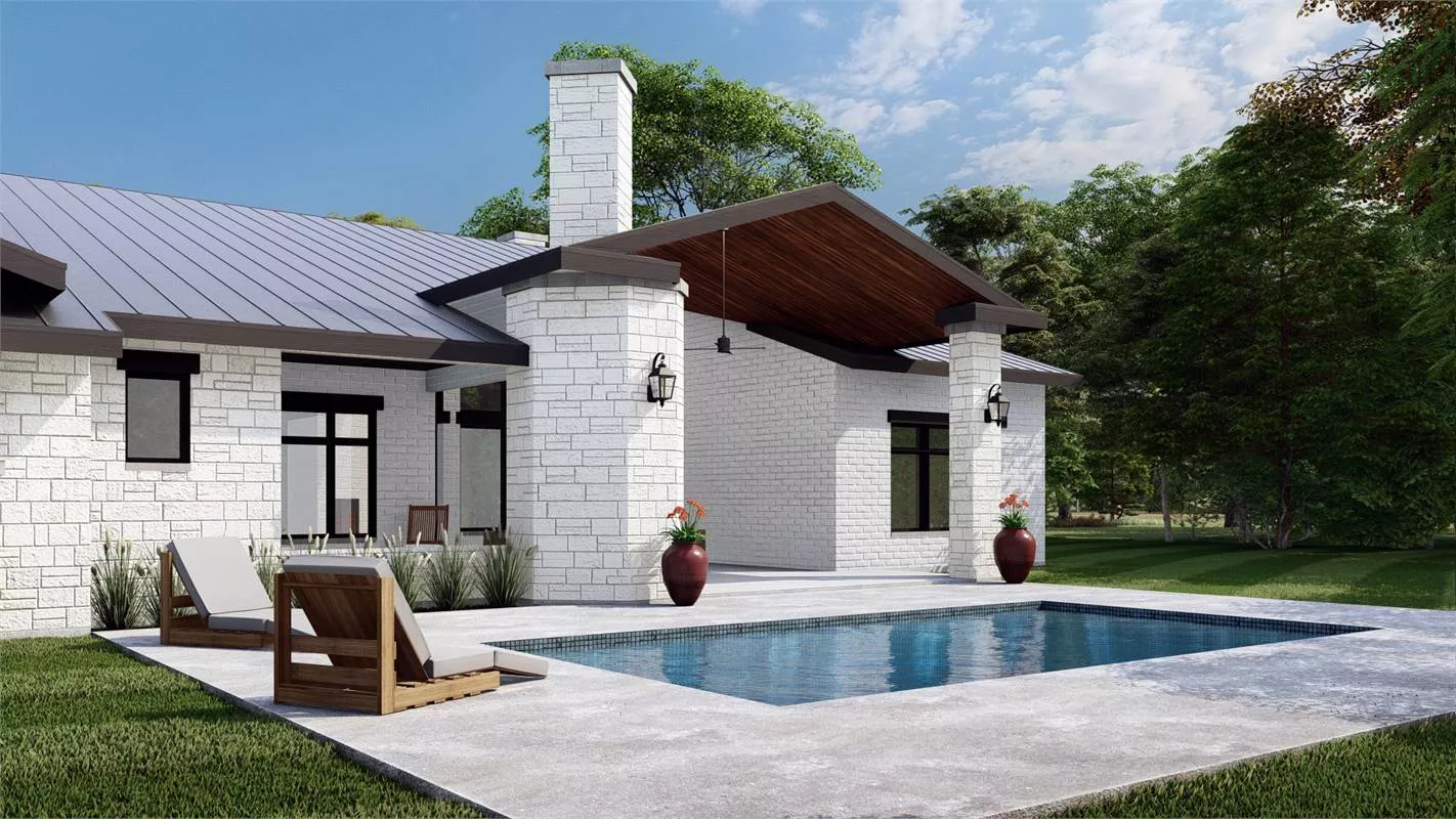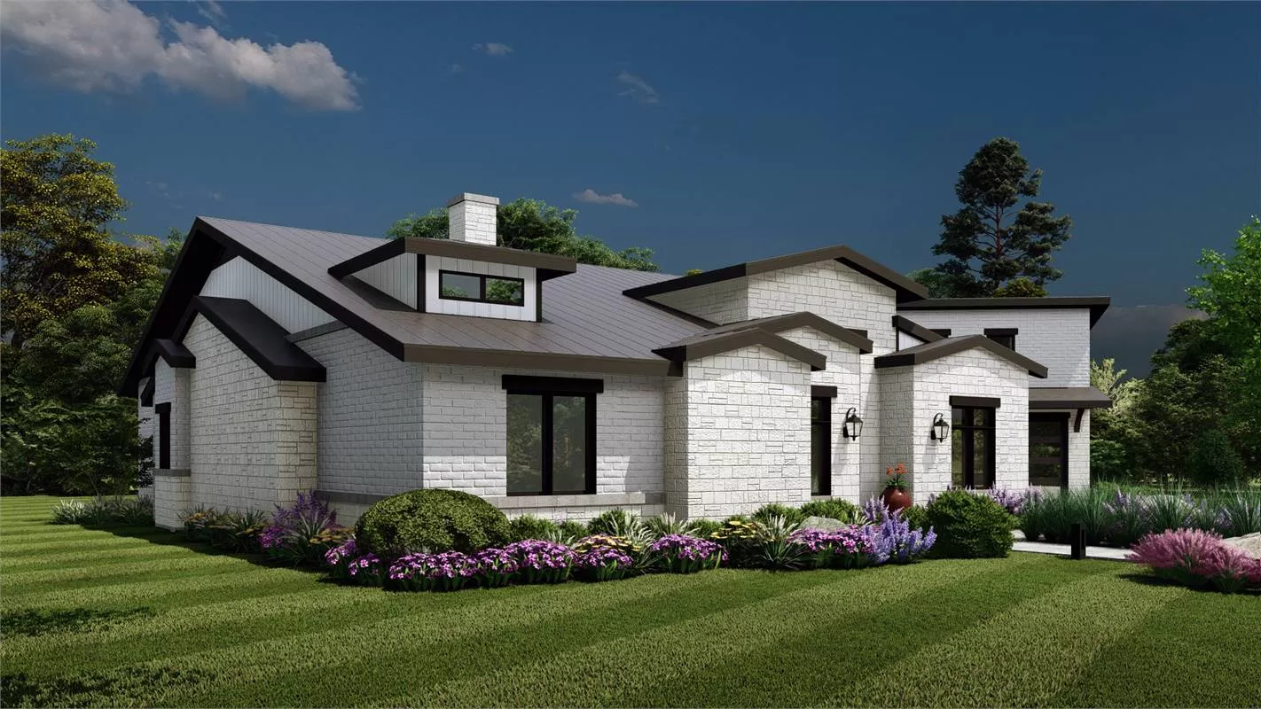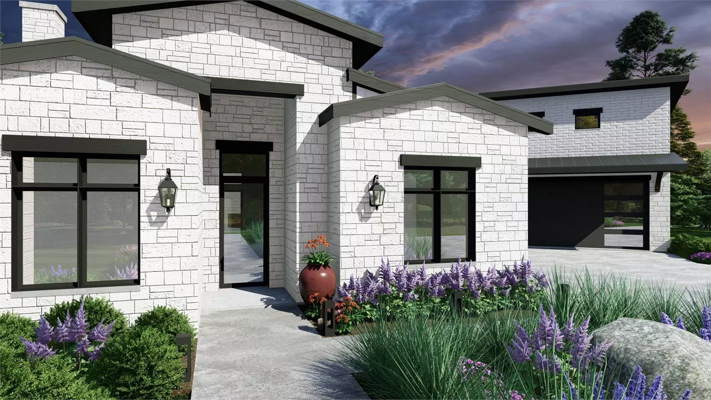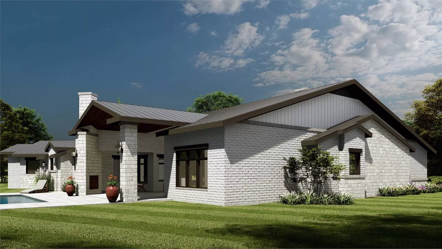 This unique sprawling ranch lets its low sloping roof eaves set a quietly dramatic tone, but don’t let its simplicity convince you. This plan is anything but small with its commanding 3,041 square footage, and if you aren’t a fan of the popular open concept living, this plan is skillfully compartmentalized without compromising its spaciousness.