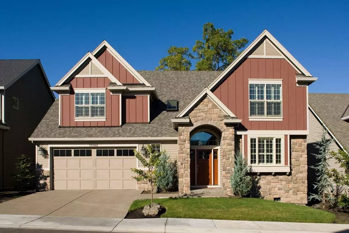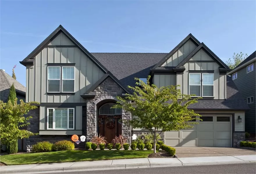 On the upper level is a vaulted master suite with vaulted bath. A compartmented toilet, walk-in closet, and spa tub are just a few of the coveted amenities here. Bedroom 3 is also vaulted and shares a full bath with Bedroom 2. An optional games room opens through double doors. Shop space in the two-car garage will appeal to the family handyman.