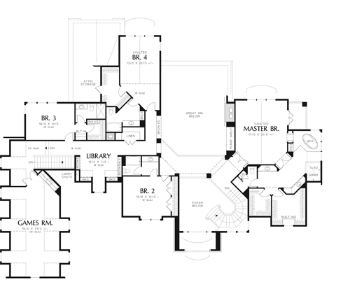 A variety of rooms provide family fun. A game room designates area for toys and play. When children need a quiet place to read or study, they can find solace in an upper-level library with built-in bookshelves and a cozy dormer nook. Crafting, gift wrapping, and art projects have a place in the family studio just off the garage entrance.