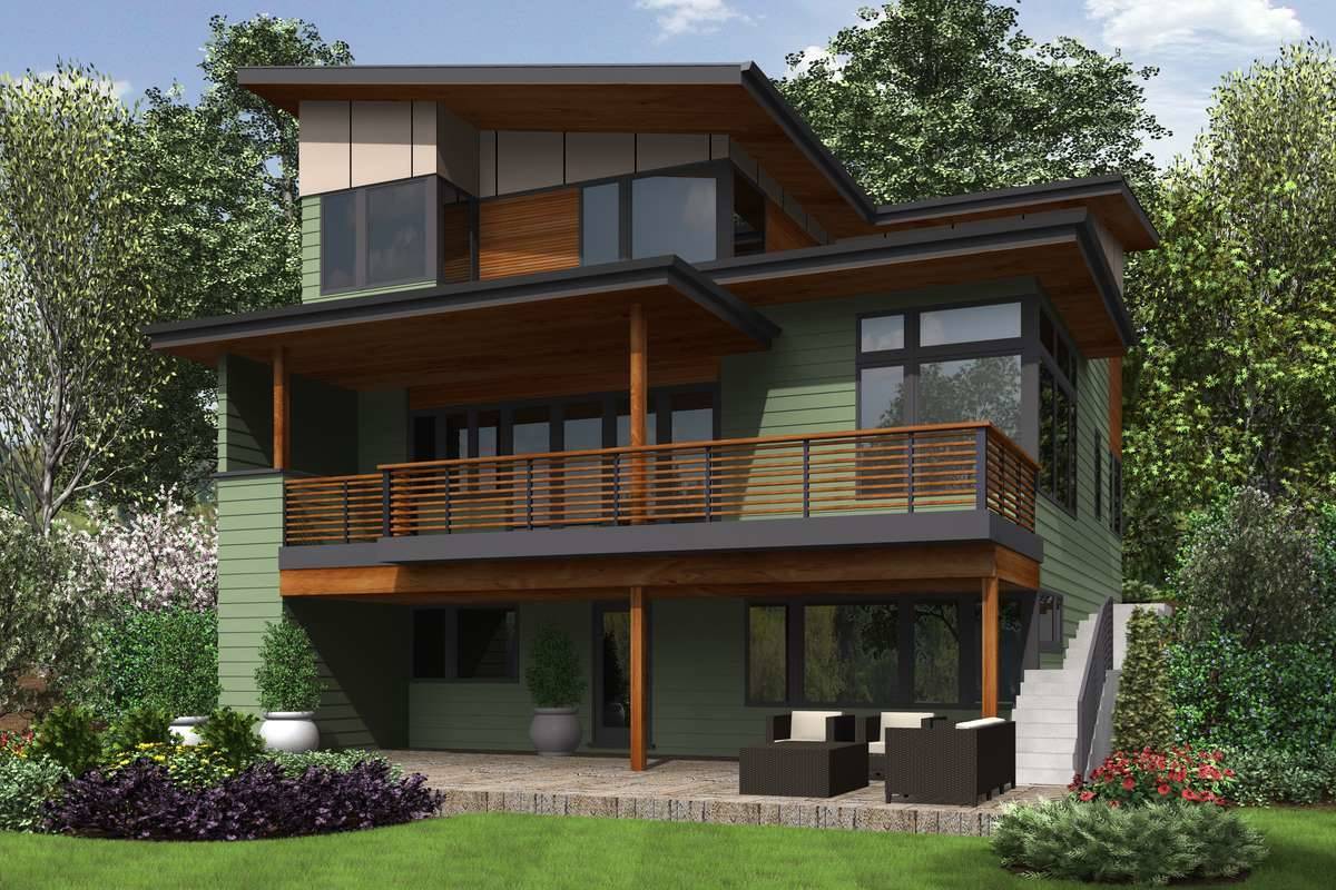 Strikingly modern and surprisingly large, this Contemporary style plan has plenty of space and a few added bonuses. Actually spanning 3 stories, this home features a finished basement with a private entrance that can double as a full apartment for rental income, or simply be an amazing bonus space, thanks to its full bedroom and bathroom, as well as a living room and the option to add a kitchen. The other two floors provide 2,298 square feet of living space, as well as 3 more bedrooms, 3 full bathrooms, and a full garage. The main floor begins with the grand foyer which moves immediately down a hallway and past an office suite with a full bathroom, making this space functional as a guest bedroom if necessary. From there, you find the open concept great room and dining room that join with the island kitchen. As an added feature, this home offers a covered back porch with a built-in grill and entertainment area. The upstairs level of this home is where you will find all of the main sleeping areas, including a full bedroom with its own private en-suite, the master with its dual vanity bathroom, spa tub and walk-in closet, and finally, a designated exercise room, great for pursuing a healthy lifestyle year round. This home can potentially have 3 floors of amazing living space, or you can opt to have a renter or in-law suite downstairs, the choice it completely yours!