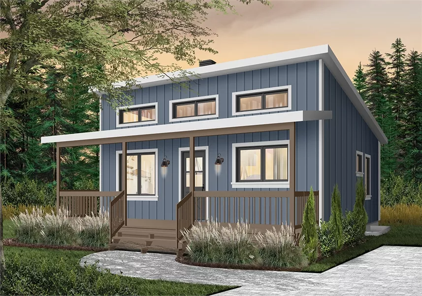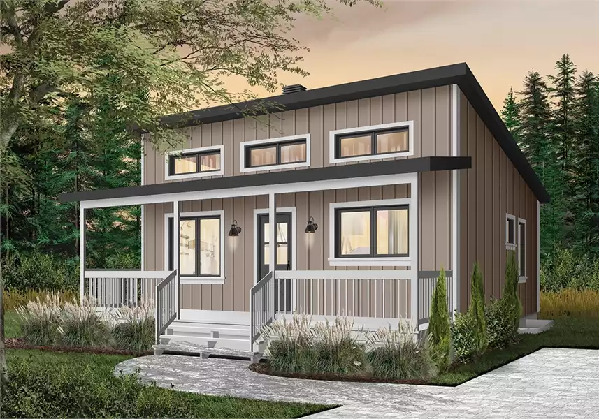 Can you picture this two-bedroom home on your lake property? What's stopping you? Beyond the front porch, the efficient kitchen serves meals and snacks with ease. The great room will be a nice gathering space. A fireplace or woodstove adds ambience. The two bedrooms allow you all to be well rested for the next day's activities. The full bath is bright and pleasant. Stairs lead to the lower level.