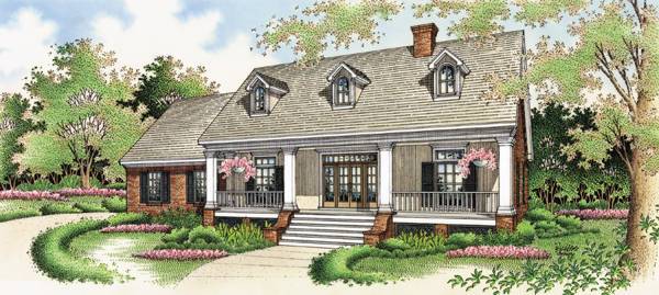 This Southern-style design is filled with inviting spaces, including a front porch accented by shutters that are both functional and stylish. Across the porch, gracious French doors lead into the entry and living room. The living room has a wood burning fireplace and 12 ceilings with skylights. Two sets of French doors lead out to a rear porch and open sun deck. The secluded master suite offers double doors to access a private bath with a dual-sink vanity and his-and-hers walk-in closets.