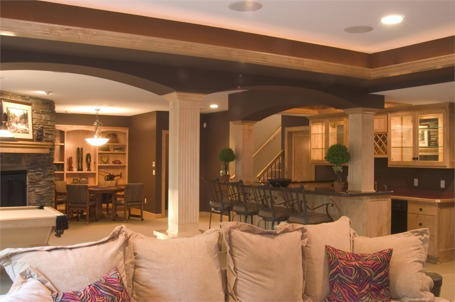 Craftsman details enhance the exterior of this two-story home design. On the interior, the central kitchen flows into the inviting family room with fireplace. A second fireplace warms the sizable screen porch; what a great spot to spend a few hours with a good book! Check out all the features in the oversized mudroom. On the upper level, a tray ceiling presides over the sleeping area of the master suite. On the lower level, a wet bar refreshes friends and family members as they enjoy games and fun.